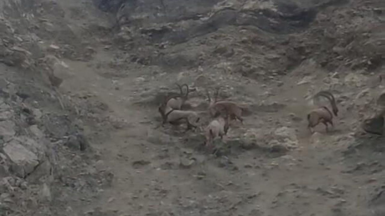 Sabah saatlerinde Muzaffer Bayram isimli vatandaş tarafından cep telefonu kamerası ile görüntülenen dağ keçileri, sarp kayalıklarda ustaca gezip yiyecek aradı. Muzaffer Bayram, "Aracımla Çüngüş ilçemizden eve dönüyordum. Yol kenarına yaklaşan 5 dağ keçisini gördüm. Ben de hemen aracımı yol kenarına çekip bu güzel hayvanları cep telefonu kameramla kaydettim. Dağ keçileri büyük ve besiliydi. Doğanın dengesinin korunması için insanların bu hayvanlara zarar vermemesini istiyorum" dedi.