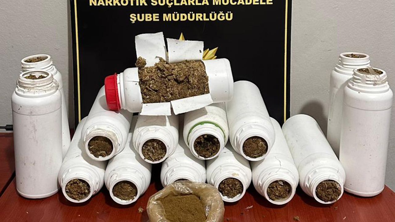 Yapılan aramalarda, 15 parça halinde 7 kilo skunk ve 1 parça halinde 150 gram kannabinoid maddesi ele geçirildi.
