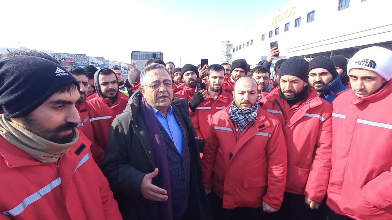 DİYARBAKIR HABER- CHP Genel Başkan Yardımcısı ve Diyarbakır Milletvekili Sezgin Tanrıkulu, Diyarbakır-Elazığ Karayolu üzerinde bulunan Migros Dağıtım Merkezi’nde iş bırakma ve işi yavaşlatma eylemi yapan işçilere destek verdi.