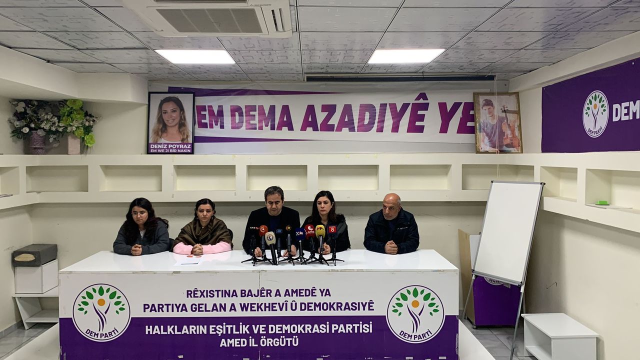 DEM Parti Diyarbakır İl Örgütü Başkanı Abbas Şahin, pazar günü kentin farklı noktalarından binlerce kişinin katılımıyla gerçekleştirilmesi planlanan mitingin ileri bir tarihe ertelendiğini belirtti.