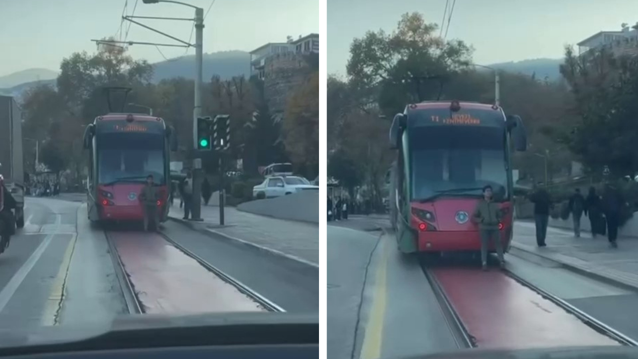 Edinilen bilgiye göre, şehir içi ulaşımı sağlayan tramvayın arka bölümüne tutunup oturarak ilerleyen çocuğu fark eden vatandaşlar, duruma tepki gösterdi. Trafiğin yoğun olduğu güzergahta ölümle burun buruna gelen küçük çocuğun, tramvayla uzun bir süre bu şekilde seyahat ettiği öğrenildi.