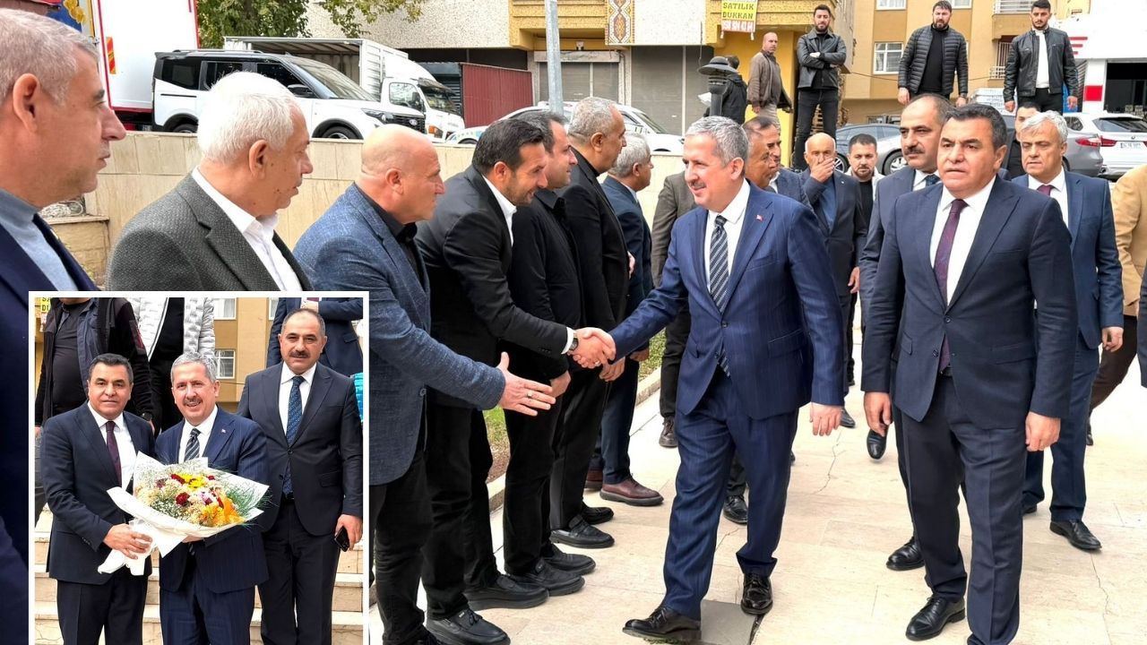 Ebedinoğlu ve oda başkanları, Bakan Yardımcısı Gürcan ve Atik’i kapıda çiçekle karşıladı.