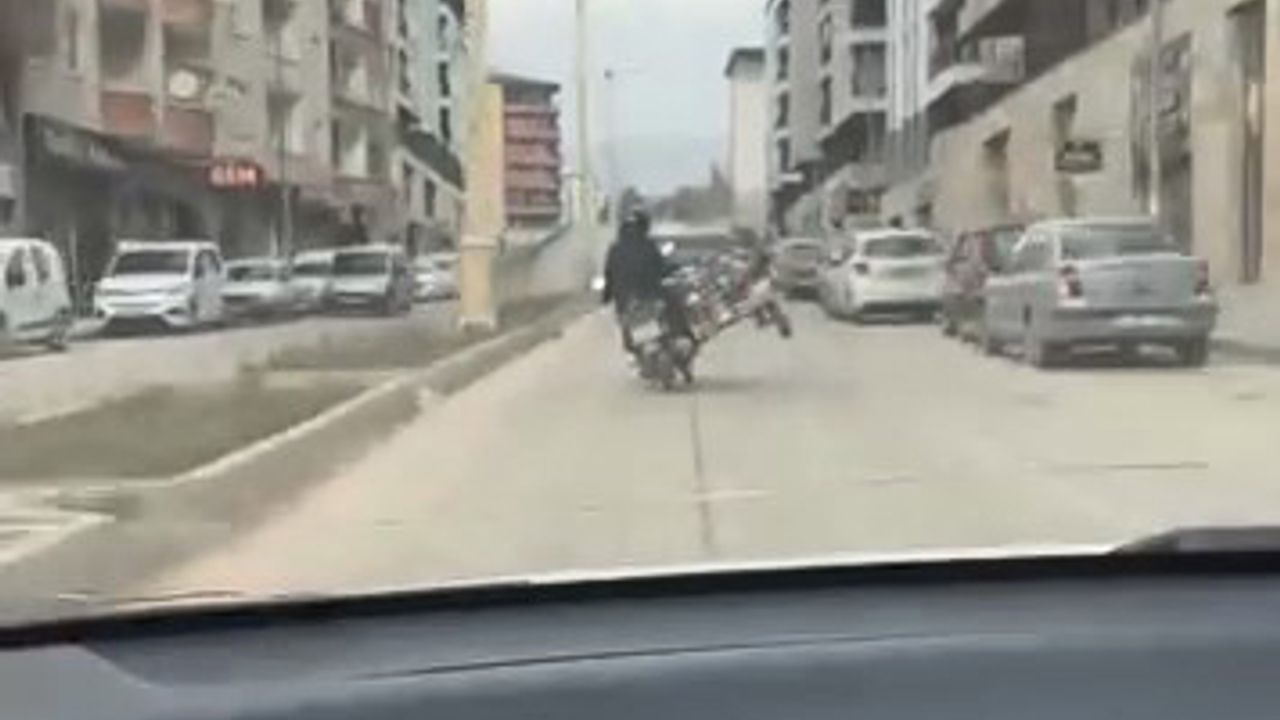 DİYARBAKIR HABER - Elazığ Rüstempaşa Mahallesi'nde meydana geldi. Edinilen bilgiye göre, mutfak tüpü taşıyan bir motosikletli, sepetin olduğu kısmın tekerleklerini kaldırarak trafikte seyir etti. Hem kendi canını hem de diğer sürücülerin canını atan sürücü, başka bir araçta bulunan vatandaşın cep telefonu kamerasına yansıdı. Trafikte tehlikeli hareketlerde bulunan motosikletli bir süre sonra gözden kayboldu.