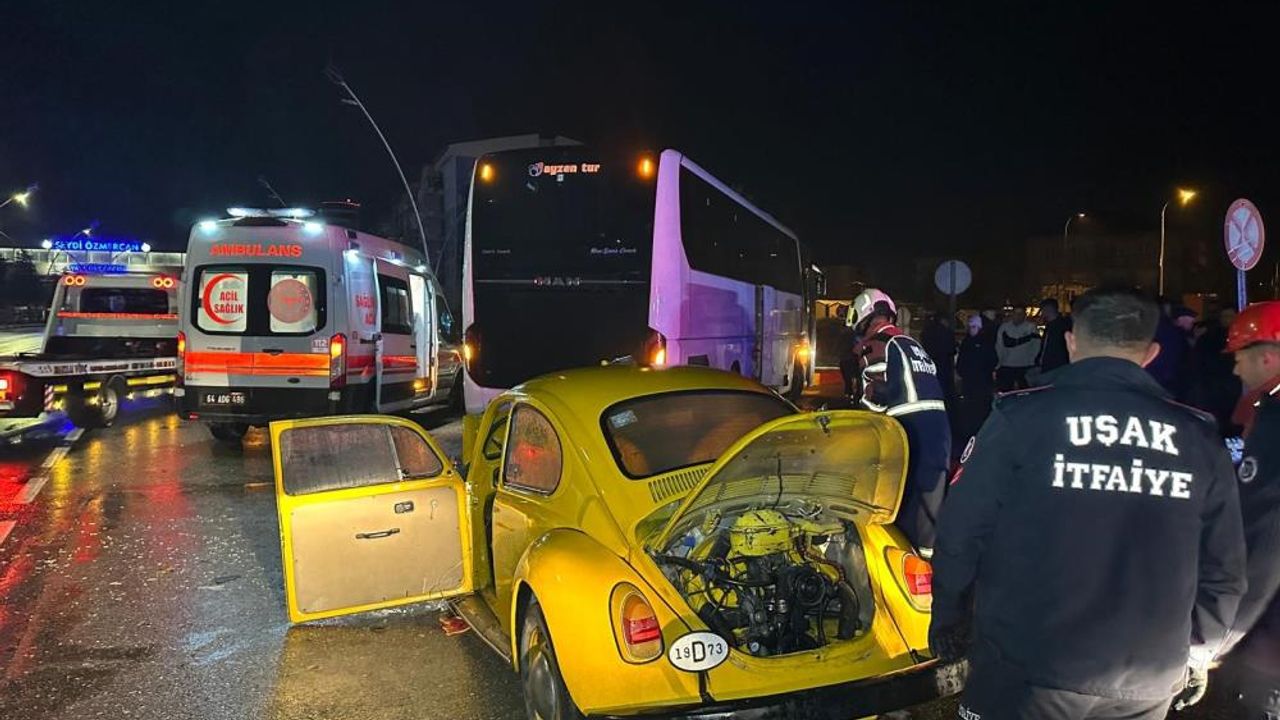 Kaza, Uşak merkeze bağlı Durak Mahallesi Gazi Bulvarı ile aynı mahalleye bağlı Günsazak Caddesi'nin kesişiminde meydana geldi. Edinilen bilgilere göre, Gazi Bulvarı üzerinde seyir halinde olan M.A. (36) idaresindeki 34 CVG 008 plakalı otomobil ile Gazi Bulvarı'ndan Günsazak Caddesi'ne dönüş yapmak isteyen A.Ç. (27) yönetimindeki 34 VTT 39 plakalı sanatçı orkestrasını taşıyan otobüs çarpıştı.